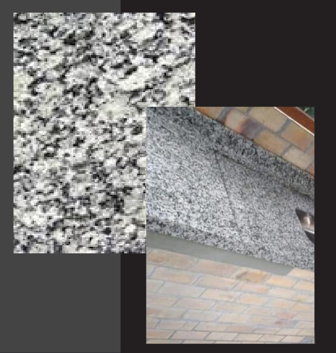 O granito Cinza Corumbá caracteriza-se pelo seu fundo cinza com amêndoas brancas.