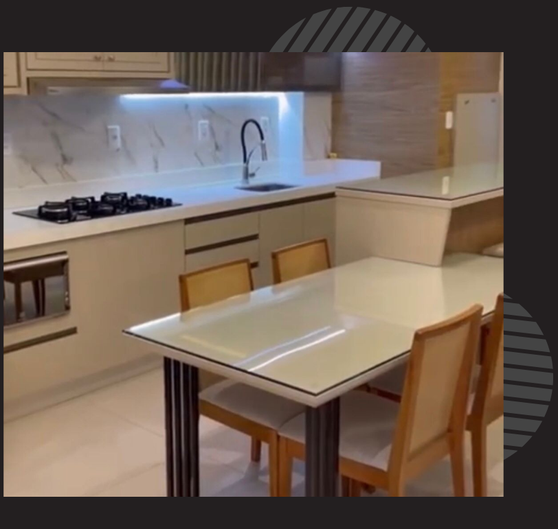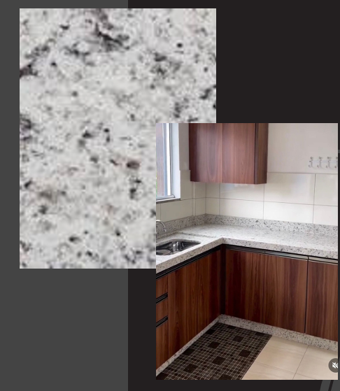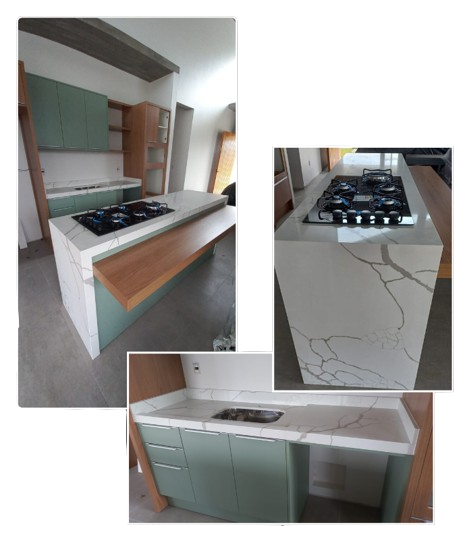 É uma material reconhecido por sua tonalidade branca pura e acabamento sofisticado. É uma escolha popular para bancadas de cozinha devido à sua estética elegante e propriedades funcionais.